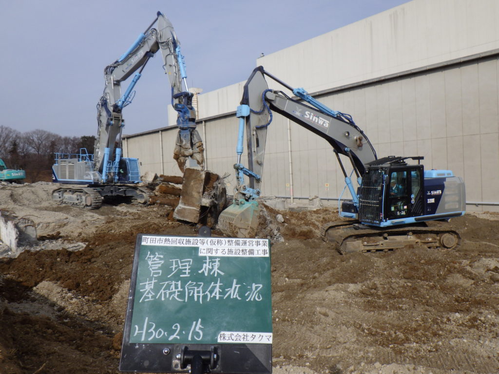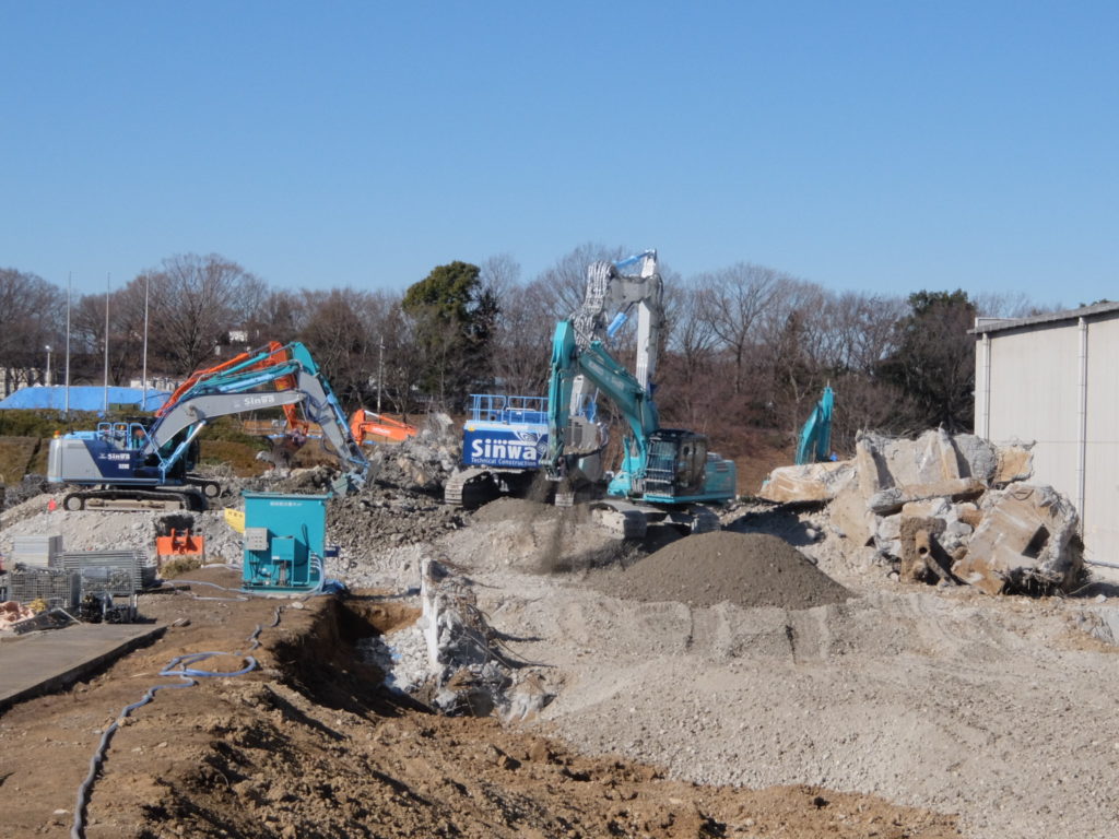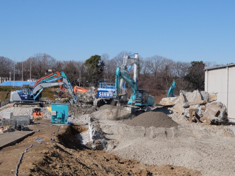 2018.03.1 現場写真 現場状況(2018年2月) ①既存管理棟建屋基礎解体状況(2月中旬) ②既存管理棟建屋基礎解体状況(2月中旬)(3月より既存杭の引抜工事に着手します) ③造成工事状況(2月下旬) ④造成工事状況(2月下旬) ⑤造成工事状況(2月下旬)(造成地の掘削・土砂の搬出作業を進めています) ⑥造成工事状況(2月下旬)(造成地の掘削・土砂の搬出作業を進めています)