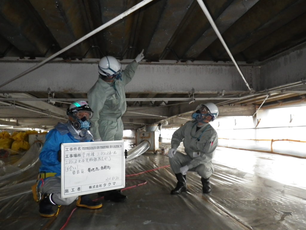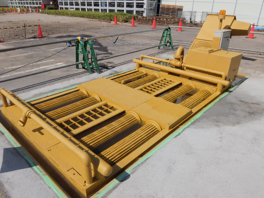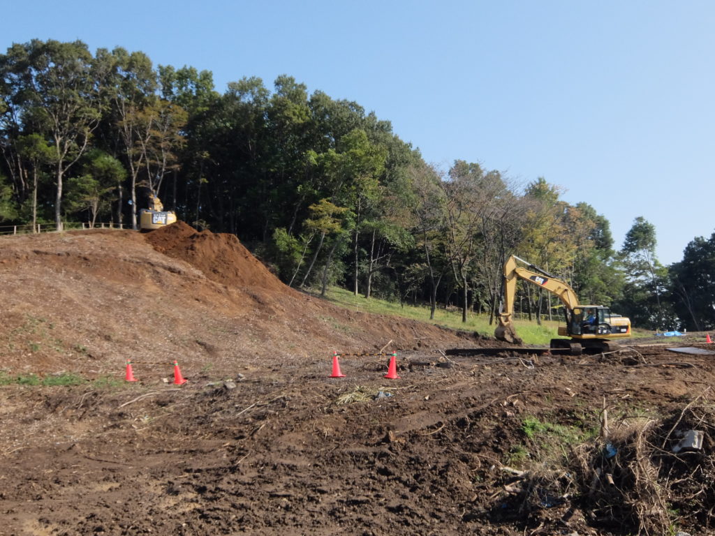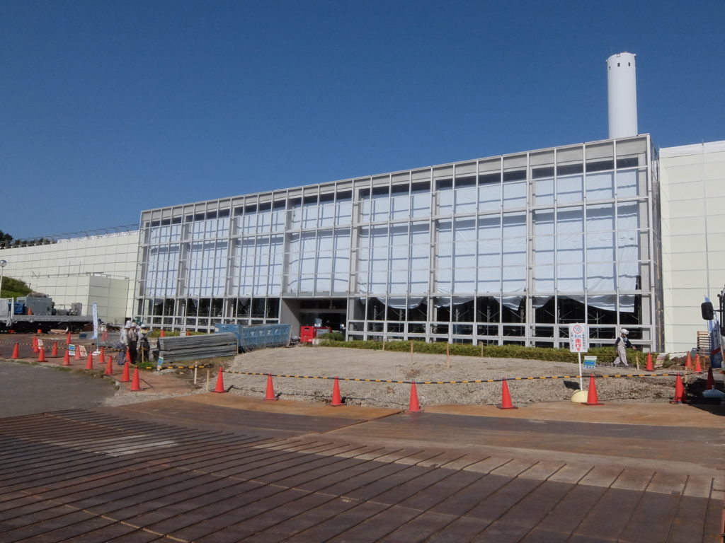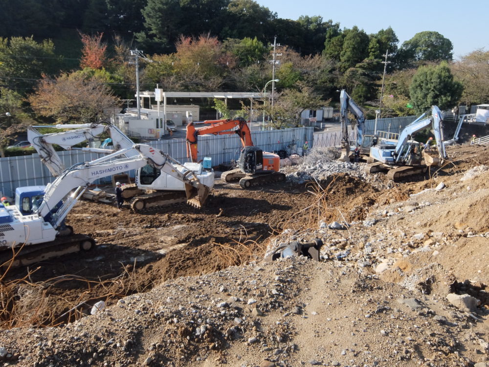 2017.11.1 現場写真 現場状況(2017年10月) ①花の家建屋基礎解体状況 ②既存管理棟内装解体状況 ③既存管理棟エントランスホール内装解体確認状況 ④既存管理棟上屋解体準備状況 (窓ガラス飛散防止用養生シートの設置) ⑤造成工事施工状況 ⑥工事車両タイヤ洗浄機の設置 (造成工事のダンプカーのタイヤを洗浄し、場外への土の持ち出しを防止)