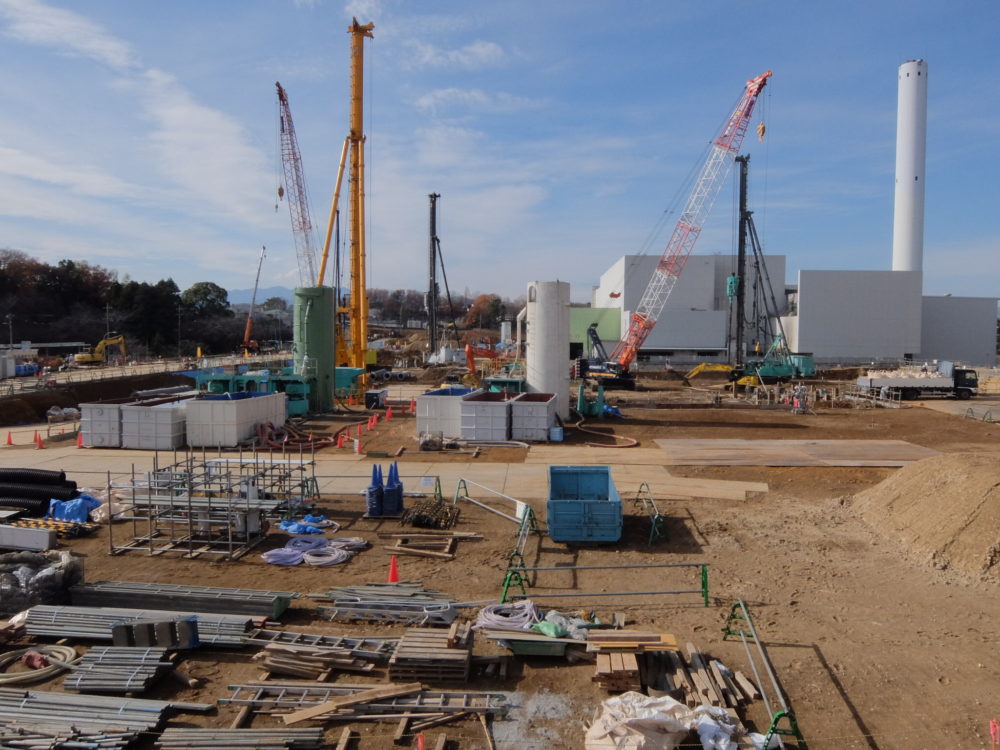 2019.01.19 現場写真 現場状況(2018年12月) ①工場棟建築工事状況(12月上旬)(今月より熱回収・バイオガス化施設の杭を打設しました。) ②工場棟建築工事状況(12月中旬) ③工場棟建築工事状況(12月中旬) ④工場棟建築工事状況(12月中旬) ⑤工場棟建築工事状況(12月中旬) ⑥工場棟建築工事状況(12月下旬)