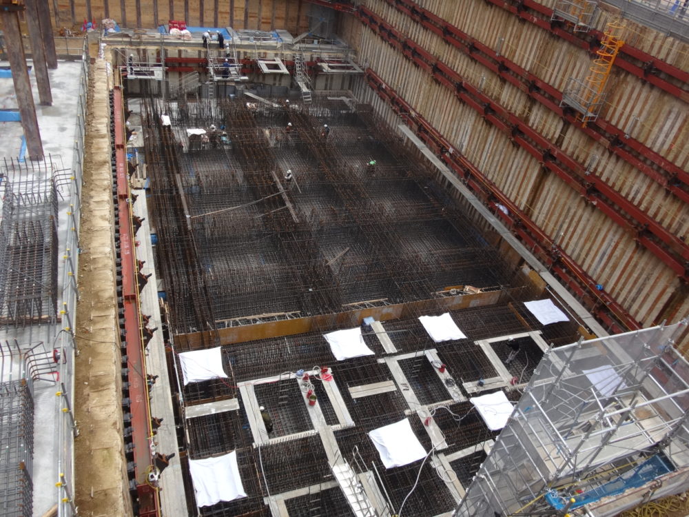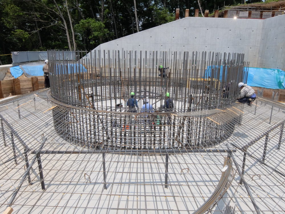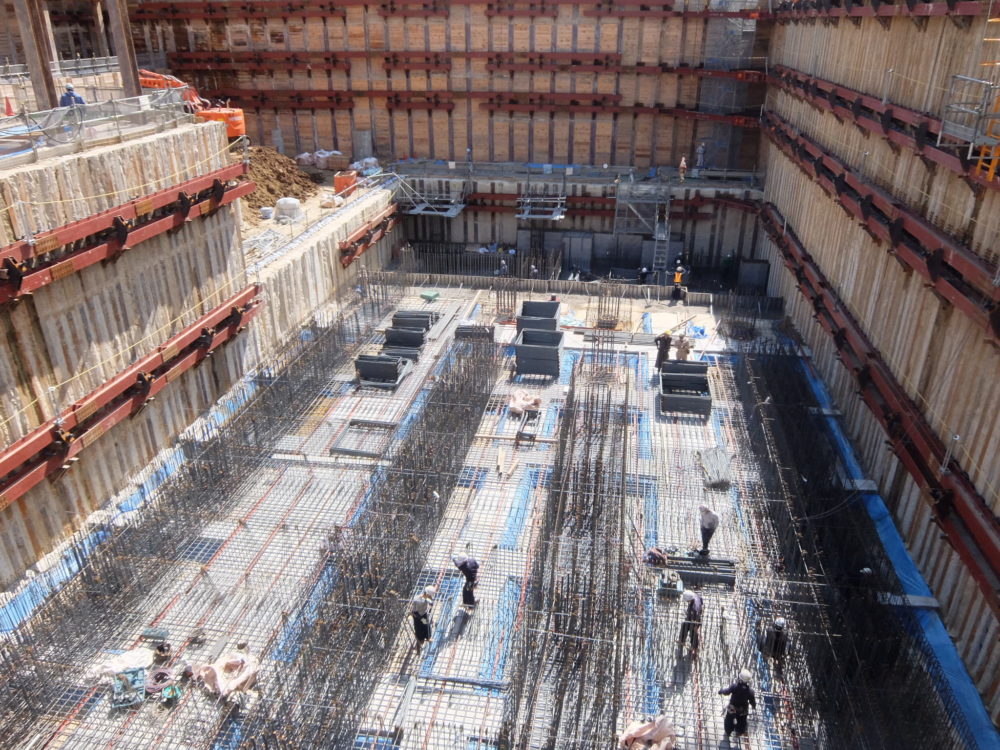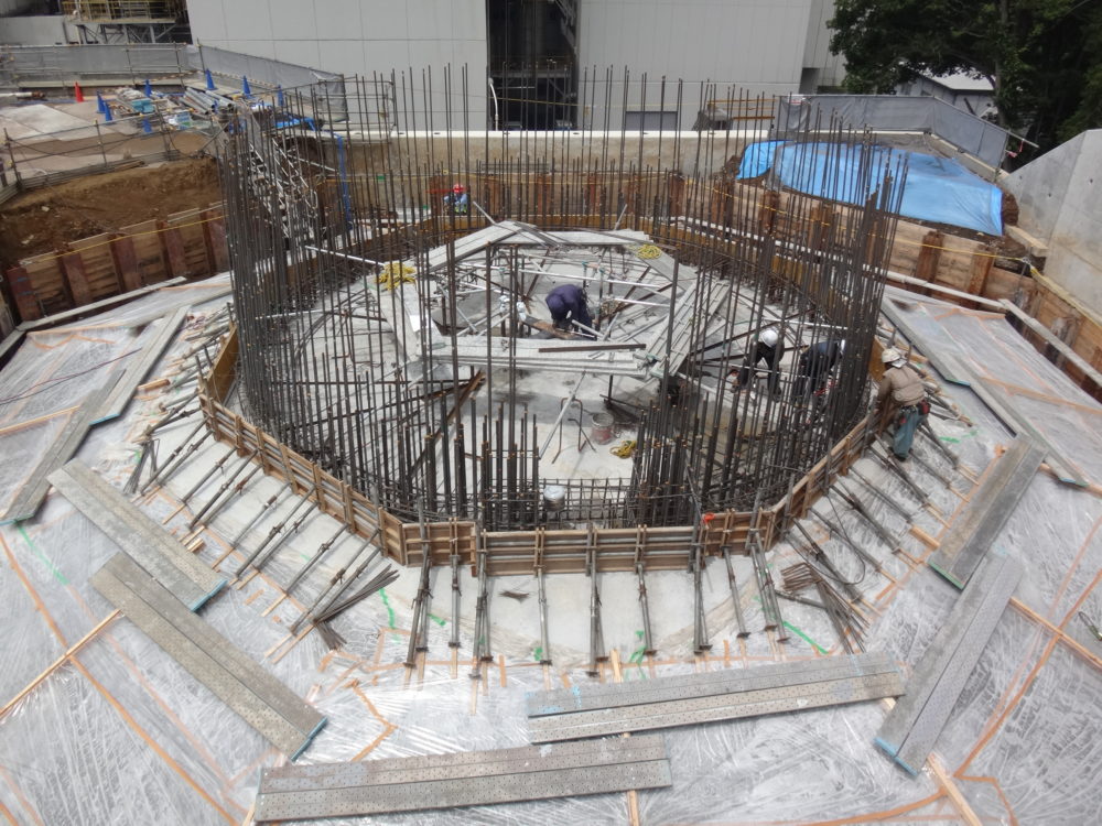 (底部から順に鉄筋工事・コンクリート工事を進めてきています)