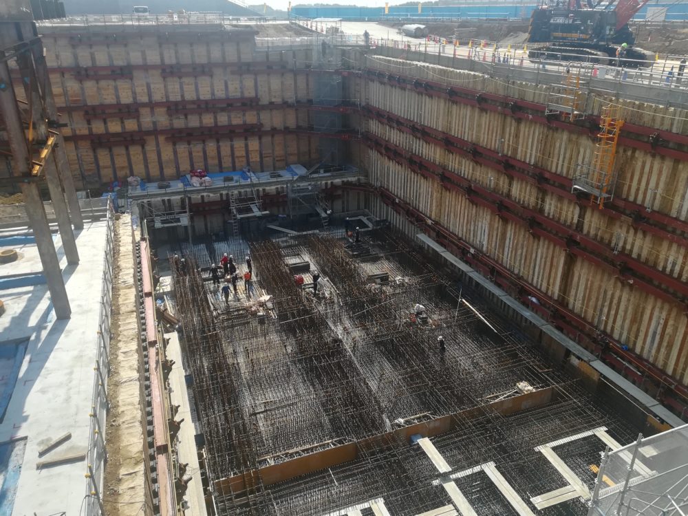 ごみピットの掘削は、地下18mの最も深い部分まで完了しました)