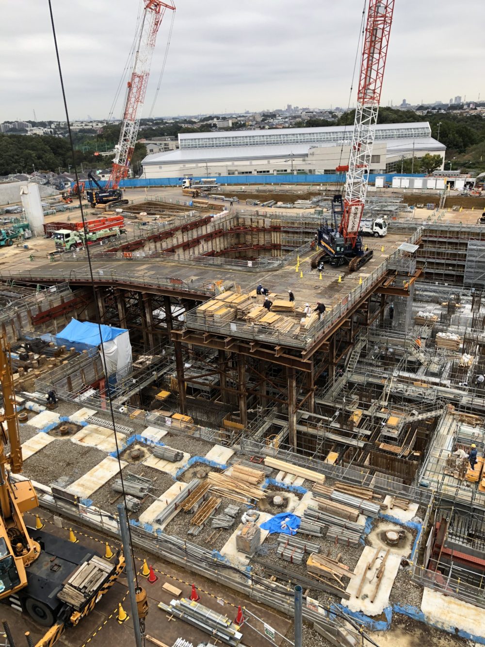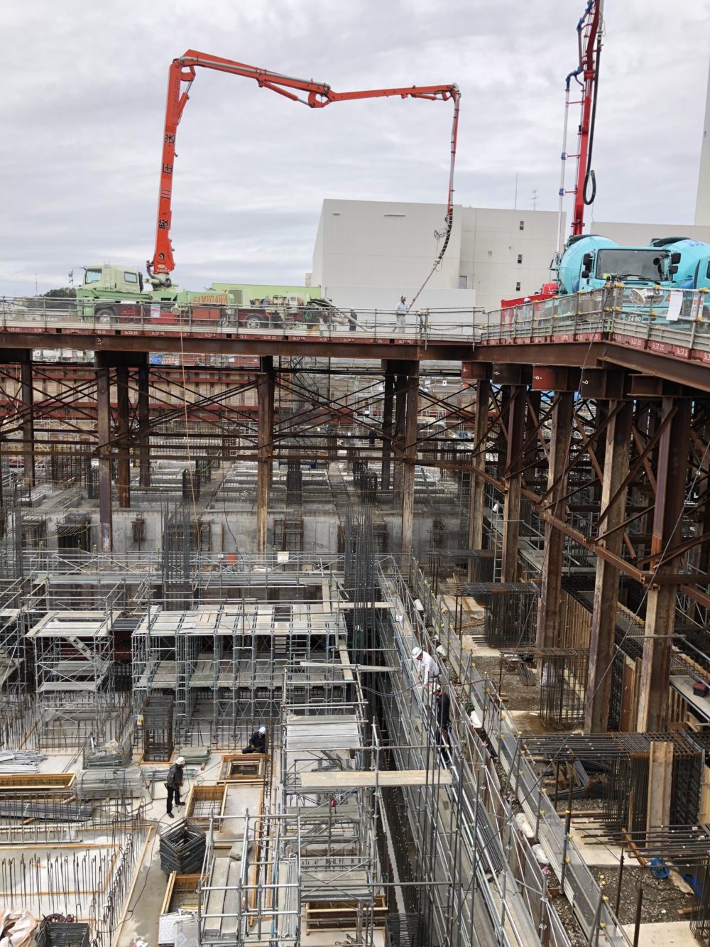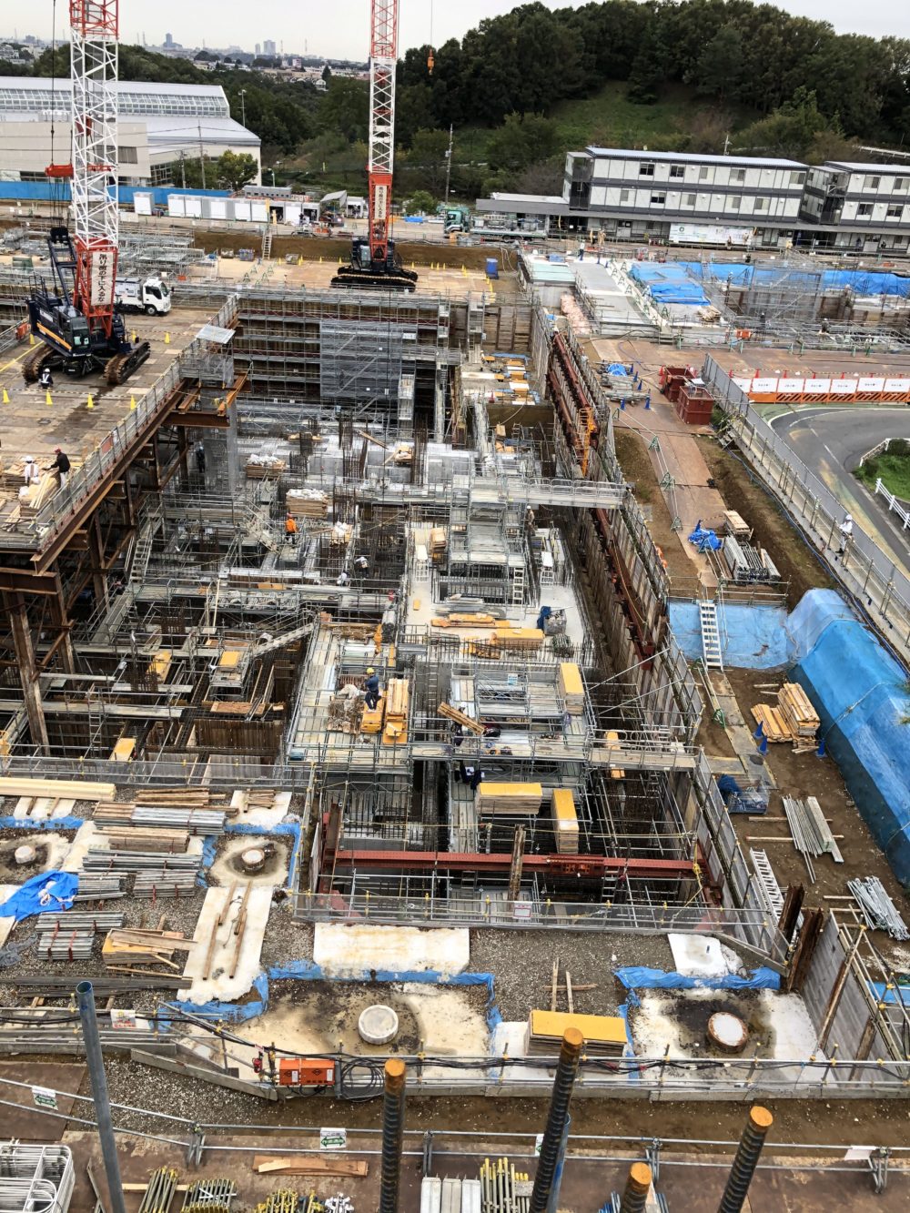 2019.11.14 現場写真 現場状況(2019年10月) ①工場棟建築工事状況(10月中旬)(今月も引き続き、工場棟の地下躯体工事を行いました) ②工場棟建築工事状況(10月中旬) ③工場棟建築工事状況(10月下旬) ④工場棟建築工事状況(10月下旬) ⑤工場棟建築工事状況(10月中旬)(煙突本体(外筒)工事を進めています) ⑥工場棟建築工事状況(10月中旬)