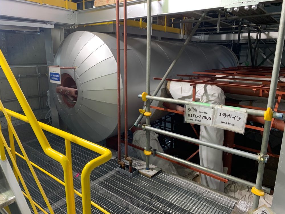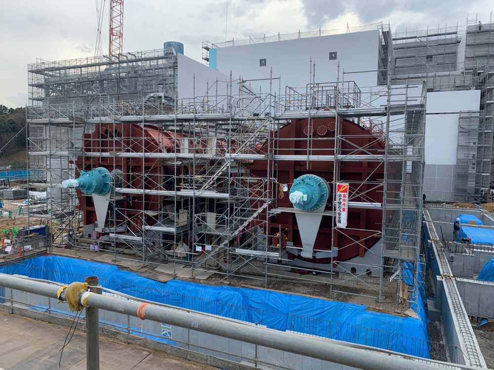(熱回収施設のボイラの仕上げ工事を進めています)