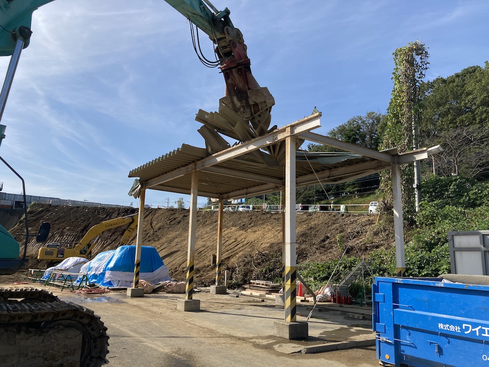 2023.11.17 現場写真 現場状況(2023年10月) ①工場棟解体工事状況(10月下旬)①工場棟解体工事状況(10月下旬)(杭引抜き工事を行いました) ①工場棟解体工事状況(10月上旬)(擁壁の撤去工事を行いました) ①工場棟解体工事状況(10月下旬)(洗車場の撤去工事を行いました)